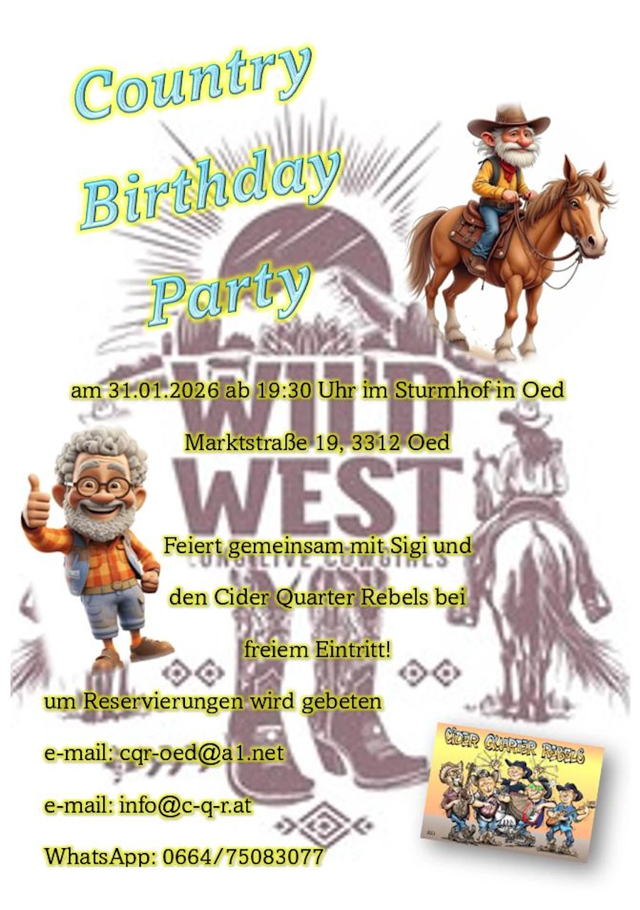 Feiert gemeinsam mit Sigi und den Beginn: 19:30 Uhr Sigi würde sich sehr freuen, wenn viele Linedancer und Country Music Fans zur Party kommen würden.