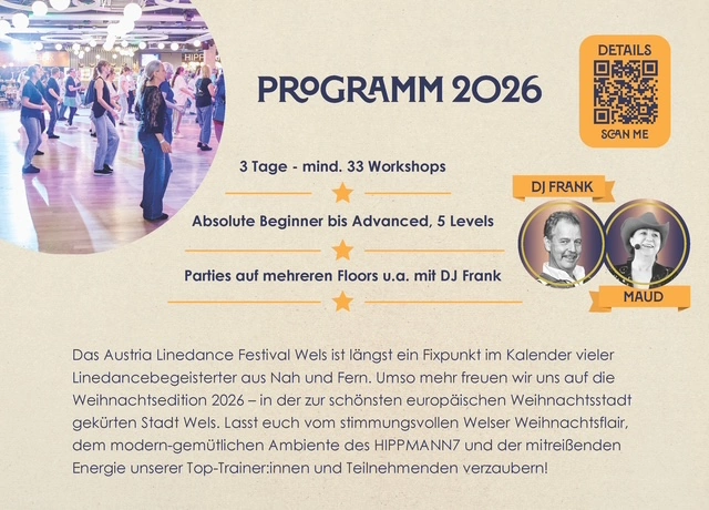 Freut Euch mit uns auf 3 spannende Linedance Tage mit Workshops, Parties, & mehr!